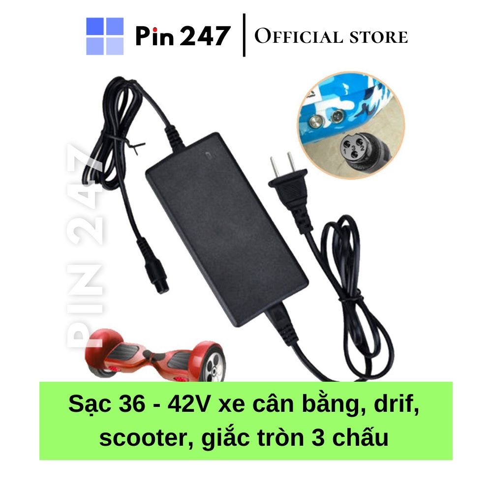 Thông số: » Sạc xe điện cân bằng 36V / 42V » Điện thế ngõ vào: AC 100 - 240V. » Điện thế ngõ ra: DC 42V » Sử dụng cho hầu hết các loại xe điện cân bằng (thăng bằng) 2 bánh, xe điện trẻ em dùng pin Li-ion 36v. Bộ sạc 42v-2A, sạc xe điện cân bằng 2 bánh 36v, Xe drift, Xe điện mini E-Scooter giắc tròn 3 chấu, đèn báo đầy. » Đầu jack cắm sạc: 3 pin (chuyên cho xe điện cân bằng 2 bánh). » Đèn báo: Có 2 trạng thái. + Led báo xanh: Không sạc hoặc pin đầy. + Led báo đỏ: Đang sạc pin. Lưu ý: - Đèn báo sạc chỉ chuyển sang đỏ, khi pin còn sạc được. Nghĩa là chức năng sạc của pin phải còn hoạt động. Nếu khi cắm sạc vào xe, đèn không chuyển sang đỏ, hoàn toàn không có nghĩa là sạc lỗi. - Nếu cắm sạc cho xe mà đèn sạc nhấp nháy đỏ là pin trong xe đang bị hỏng, không sạc được hoặc đang cắm nhầm với xe dùng pin khác. Khi đó cần rút sạc ra khỏi xe ngay lập tức. Nếu tiếp tục cho sạc, sạc sẽ bị lỗi: Luôn sáng đỏ. Trường hợp lỗi này là không phải do nhà sản xuất, nên shop không nhận đổi trả dưới mọi hình thức. Vì ngay khi gửi hàng, shop đã cho test thử OK mới cho đóng gói và gửi đi. Mong Quý khách lưu ý!