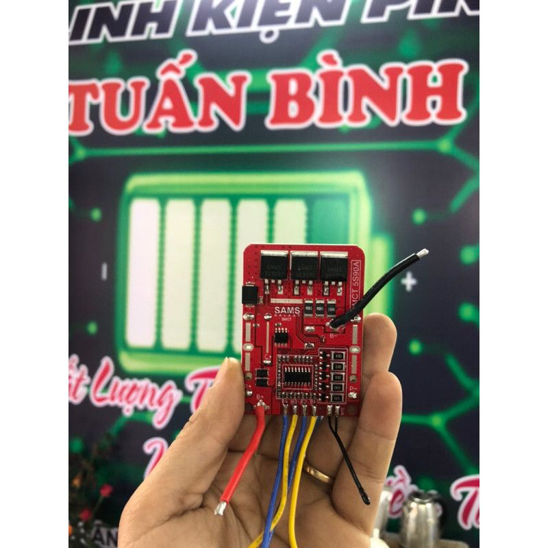 Mạch 5S Makita 3Fet 90a Hãng SAMS đời mới dành cho máy tải lớn. chạy máy 3 chân, ko cần hàn diod. Lưu ý ***Thông tin sản phẩm và sử dung: - Mạch bảo vệ pin Makita 5s 18v 90a. - mạch tích hợp cân bằng cel pin thụ động, sử dụng ic quản lí việc xả cân bằng tránh việc gây xả chết cell - Sạc vào (DC in): 21V DC - Giắc DC in: Giắc cái 5.5*2.1mm. - Điện thế bảo vệ: 15v - Điện thế sạc đầy: 21v - Dòng xả liên tục (hoạt động): 90A - Chức năng: Sạc bảo vệ cell pin Li-ion, dùng trong pin máy khoan, máy bắt vít Makita,... có mức điện thế từ 18v - 18.5v. Sử dụng 5 cell Li-ion nối tiếp hoặc 5 cặp cell mắc nối tiếp thậm chí nhiều hơn nữa. Lưu ý: Mạch này tương thích với máy khoan makita đời cao BL và/hoặc chân máy có 3 chấu tiếp xúc Khuyến nghị: - Đây là mạch sạc và bảo vệ pack pin Li-ion, đa năng, hoàn toàn không phải mạch pin máy khoan hay của riêng bất kỳ thiết bị nào. Mạch này có thể sử dụng cho nhiều thiết bị dùng pin sạc khác nhau. - Tuy nhiên nếu chỉ dùng cho máy bắt vít hoặc khoan có công suất nhỏ thì có thể chọn cell có dòng xả 5C - 10C thay thế. - Các cell (cặp cell) phải đều volt với nhau và sạc đủ volt (3.7V - 3.9V) trước khi lắp vào mạch. Tránh sạc đầy trên 4.2V bằng sạc rời như sạc dự phòng và/hoặc nguồn DC 5V khác. - Giắc cái DC In 5.5*2.5mm là ngõ sạc vào của mạch.