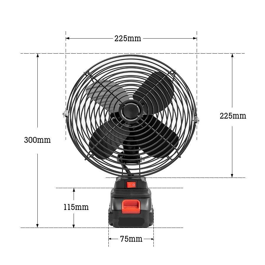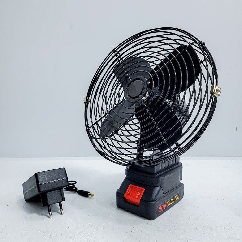 - Cánh bằng sắt sơn tĩnh điện, lồng bảo vệ bằng sắt sơn tĩnh điện, đế pin bằng nhựa ABS - Màu sắc: Màu đen - Nguồn điện: 18V-20V - Công suất: 22W - Trọng lượng quạt: 1,8kg - Đường kính bao ngoài: 22cm, đường kính cánh quạt: 19cm - Động cơ 545 18V DC - chế độ: Bật/Tắt. Ưu điểm sử dụng: - Dễ dàng sử dụng, tiện lợi và đáp ứng được nhiều mục đích sử dụng. - Chất liệu bằng kim loại kết hợp sơn tĩnh điện bền đẹp, mang lại giá trị sử dụng dài lâu. - Động cơ to khỏe, chắc chắn, an toàn khi sử dụng - Quạt thiết kế nhỏ gọn