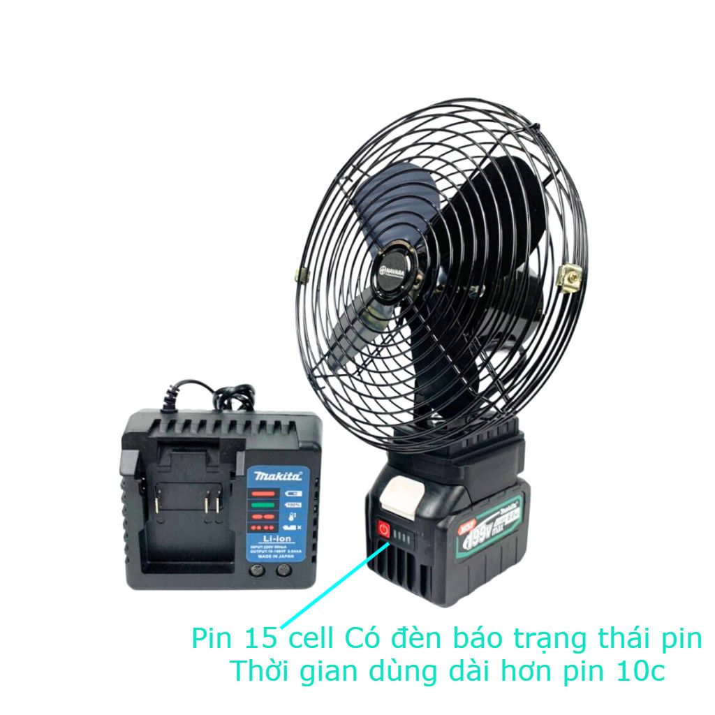 Thông tin sản phẩm: - 1 quả pin 10 cell dùng khoảng 4 đến 6 giờ. - 1 quả pin 15 cell dùng khoảng 7 đến 8 giờ. -------------------------------- Pin 10 cell là pin có chiều cao 6cm, Không có đèn báo trạng thái pin, lõi bên trong có 10 viên pin nhỏ. Pin 15 cell là pin có chiều cao 8cm, không Có đèn báo trạng thái pin, lõi bên trong có 15 viên pin nhỏ. **** Lưu ý: - Khách hàng đã có pin ( chân pin phổ thông của makita ) có thể tận dụng lại quả pin để sử dụng cho quạt. - Khách hàng chưa có pin thì nên mua 1 bộ sản phẩm đầy đủ ạ. *Trường hợp chưa rõ chân pin của mình có phải là chân pin phổ thông hay không có thể liên hệ lại với shop để được hỗ trợ --------------------------------