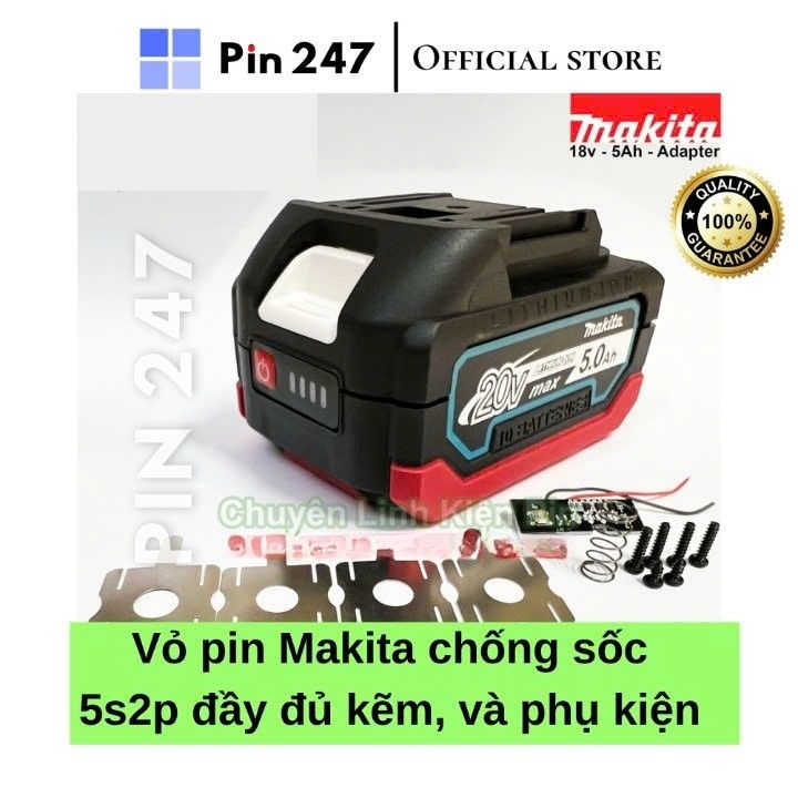 Chào mừng bạn đã đến với Shop CHuyên Linh Kiện Pin ------------------------------------------------------------------- Thông tin sản phẩm: - Vỏ, mạch pin Makita 18V chứa được 10 cell 18650 - Loại vỏ để được 10 cell Li-ion 18650 - Vỏ có bảo vệ chống sốc chống va đập - Mạch nhận sạc Adapter - Vỏ mạch sx china - Loại vỏ: Trượt. Bộ sản phẩm bao gồm: - Vỏ pin (Mặt trên và mặt dưới) - Bộ sản phẩm gồm có: 2 mặt vỏ và đủ phụ kiện (lẫy gày, lò xo, ốc vít và khung xương giữ cell). Không bao gồm mạch, cell pin và/hoặc sản phẩm minh họa khác (nếu có). Trọng lượng: 120g ---------------------------------------------------------------------------------------------------- Nếu cần thêm thông tin về sản phẩm đừng ngại, hãy vào mục chat Mọi phản hồi liên quan đến sản phẩm các bạn vui lòng chat cho mình trước khi đánh giá nhé, mình sẽ hỗ trợ nhanh và tốt nhất cho các bạn trong khả năng có thể.