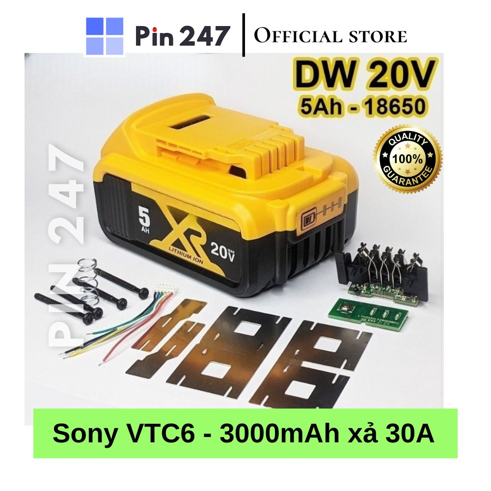 Vỏ mạch pin Dewalt 18V 5Ah Li-ion 2 hàng đủ phụ kiện ( 10 cell ) có led báo pin, nhận sạc zin